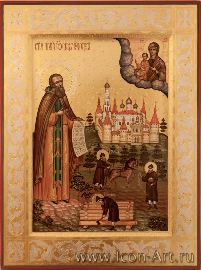 Прп. Иосиф Волоцкий (Санин, 1439/40–1515) – великий русский святой, основатель Иосифо-Волоколамского монастыря и строгого общежительного устава. Ученик прп. Пафнутия Боровского, он 18 лет провел под его руководством. Став игуменом, ввел общежитие, что вызвало недовольство, и покинул обитель. В 1479 году основал собственную обитель под Волоколамском, где установил строгий устав. Воспитал плеяду выдающихся архипастырей. Активный борец с ересью жидовствующих. Канонизирован в 1578 году как местночтимый святой, в 1591 году – как общерусский.