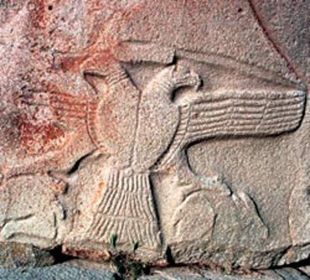 Древнейшее из обнаруженных изображений двуглавого орла. Хеттские Ворота сфинкса, Аладжа-Хююк, XIV век до Р.Х. (Википедиия)