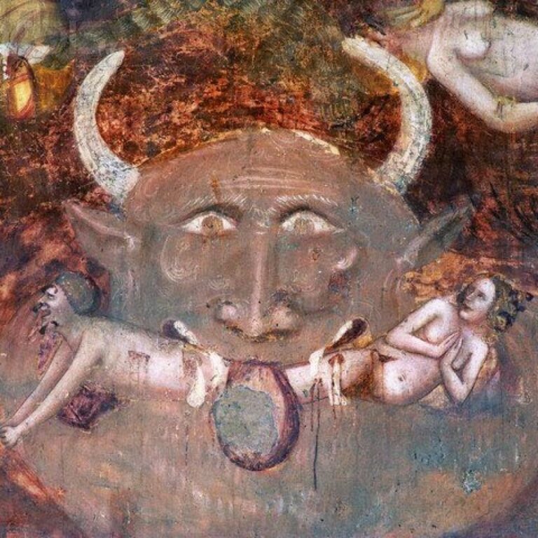 Изображение антихриста на фреске в бенедиктинском монастыре Помпоза в Италии, XIV век.