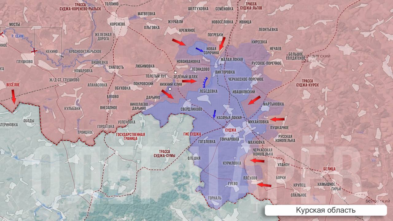 ▪️Продолжаются локальные бои на подступах к Судже, в районе Плехово и у Мартыновки. Об изменениях не сообщалось.