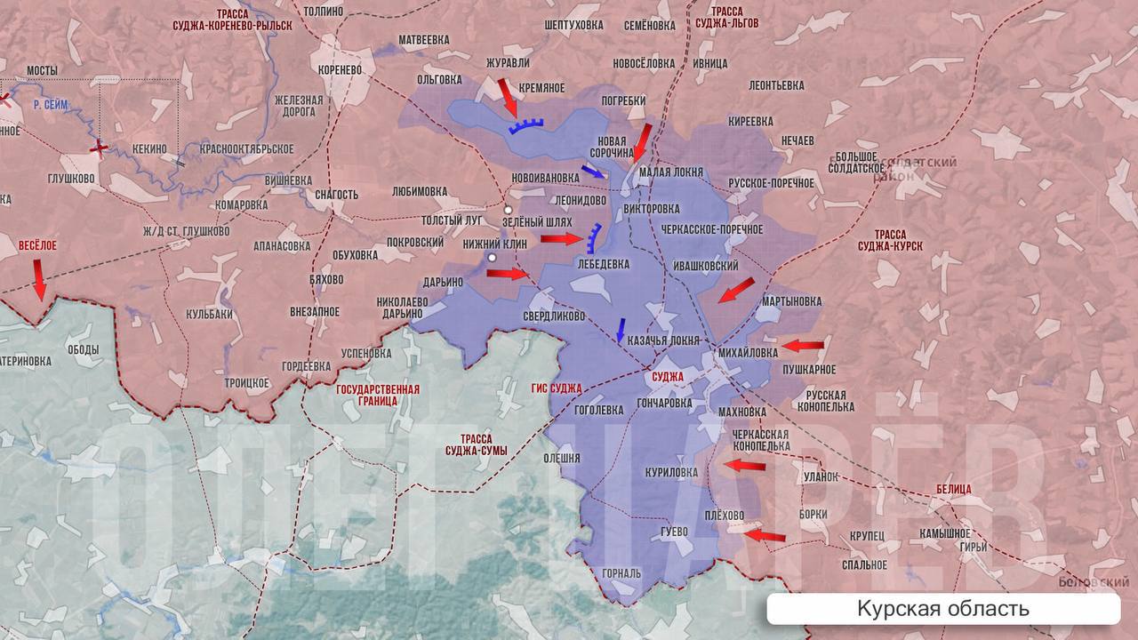 Ситуация в Курской области остается для наших военных тяжелой, причем с нашей стороны новостей совсем мало, а достоверность тех, что есть, пока вызывает сомнения. Так, были сообщения, что ВС РФ зашли в Дарьино, а кто-то даже успел написать, что оно полностью взято под контроль. Проукраинский Аналитик Bild Рёпке написал, что наши войска смогли отбить Погрбеки и Дарьино, но понесли при этом очень серьезные потери, в том числе, 28 единиц бронетехники.