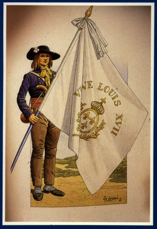 В моменты наивысшего единства Католическая армия объединяла до 40 тысяч человек и представляла серьезную опасность для республиканских войск. Она выступала под белым штандартом с лилиями и девизом: “Да здравствует Людовик” XVII”.